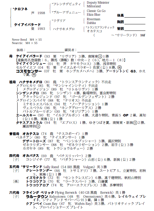 | 父クロフネ 母ケイアイバラード(母父リヴリア) |