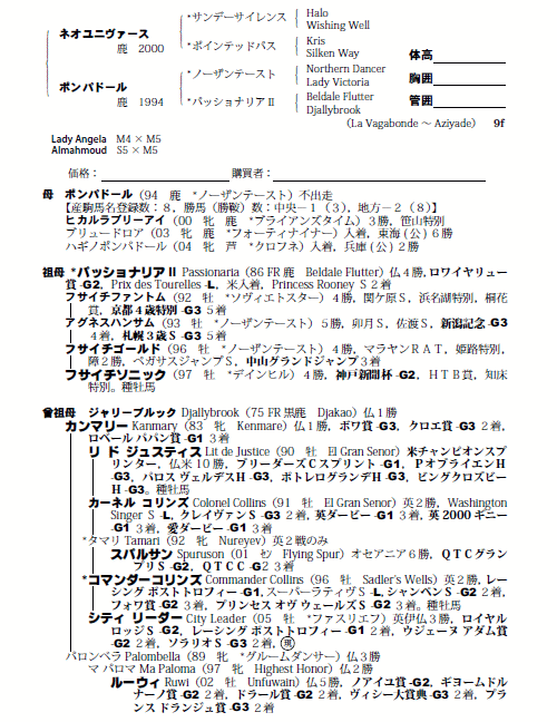 | 父ネオユニヴァース 母ポンパドール(母父ノーザンテースト) |