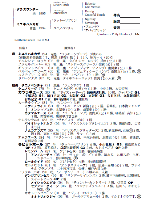 父グラスワンダー 母ミユキハルカゼ(母父ラツキーソブリン)