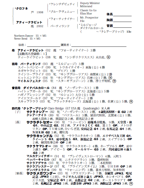| 父クロフネ 母アティーナラビット(母父フォーティナイナー) |