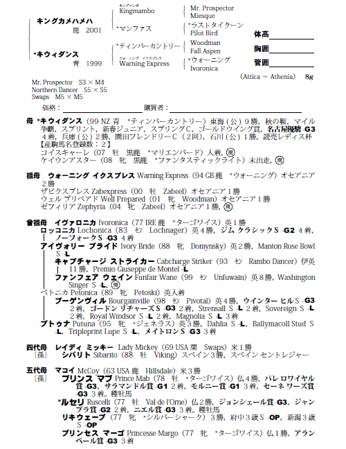 | 父キングカメハメハ 母キウィダンス(母父ティンバーカントリー) |