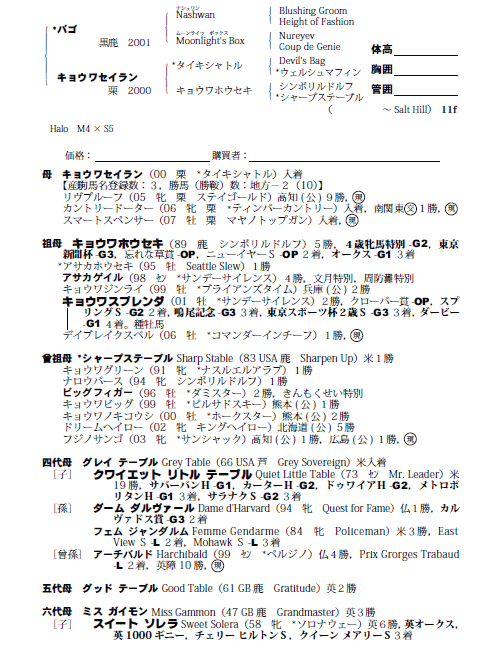 | 父バゴ 母キョウワセイラン(母父タイキシャトル) |
