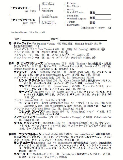 父グラスワンダー 母サマーヴォヤージュ(母父Summer Squall)