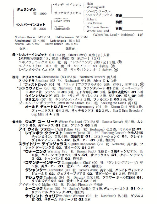 父デュランダル 母シルバーインゴット(母父Silver Hawk)