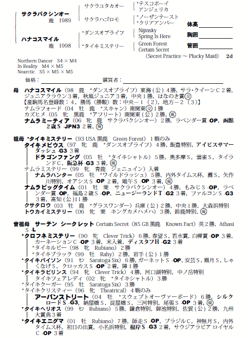 父サクラバクシンオー 母ハナコスマイル(母父ダンスオブライフ)