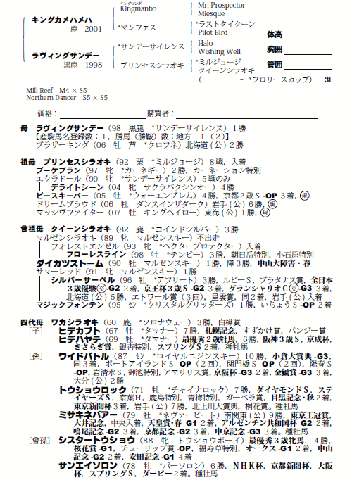 父キングカメハメハ 母ラヴィングサンデー(母父サンデーサイレンス)