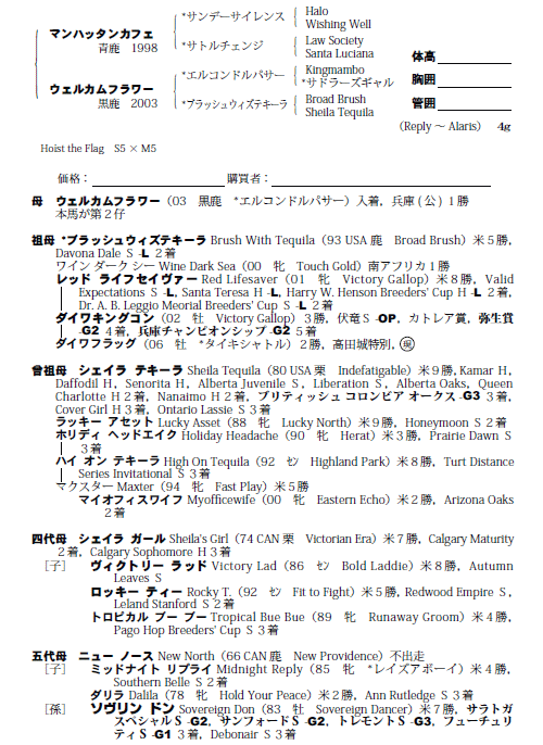 父マンハッタンカフェ 母ウェルカムフラワー(母父エルコンドルパサー)