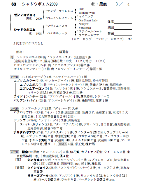 父ゼンノロブロイ 母シャドウポエム(母父ソヴィエトスター)