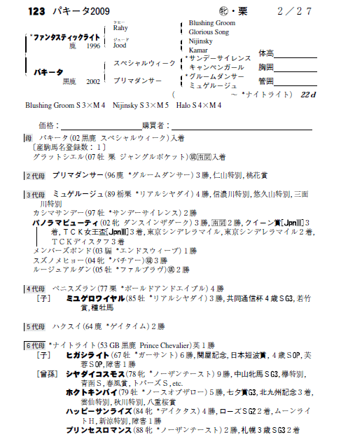 父ファンタスティックライト 母パキータ(母父スペシャルウィーク)