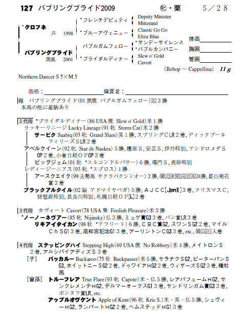 父クロフネ 母バブリングブライド(母父バブルガムフェロー)
