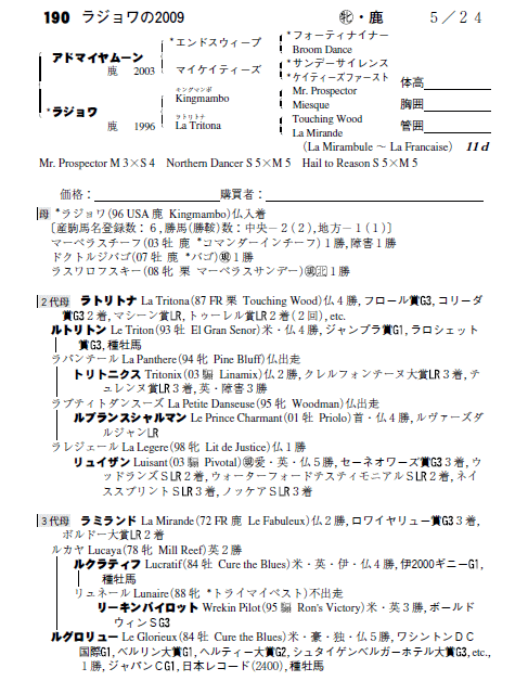 ■ HBAサマーセール2010(一歳)上場馬