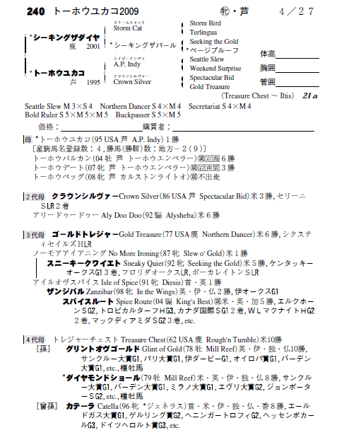 父シーキングザダイヤ 母トーホウユカコ(母父A.P.Indy)