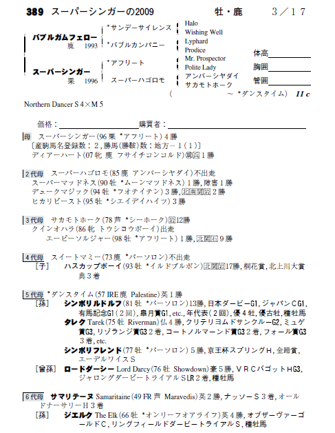 父バブルガムフェロー 母スーパーシンガー(母父アフリート)