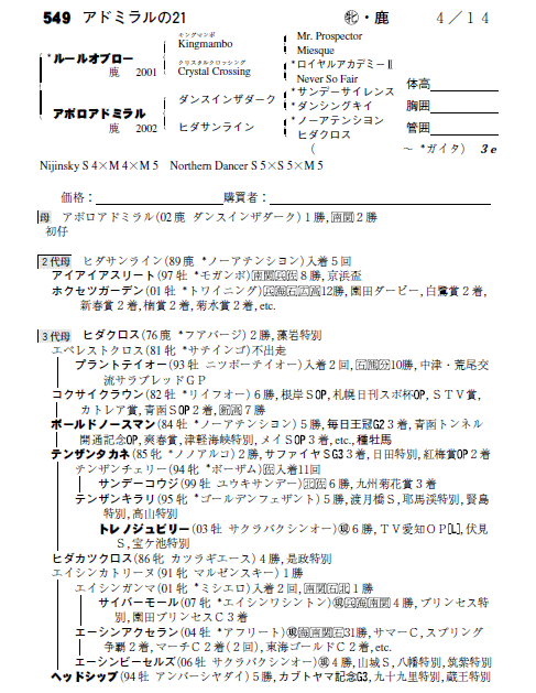 父ルールオブロー 母アポロアドミラル(母父ダンスインザダーク)