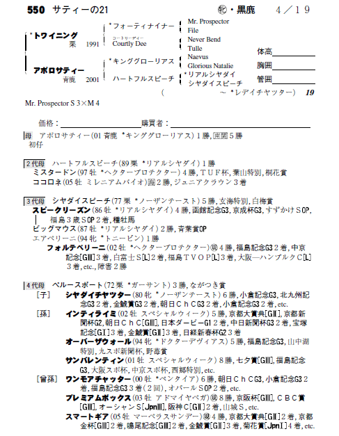 父トワイニング 母アポロサティー(母父キンググローリアス)