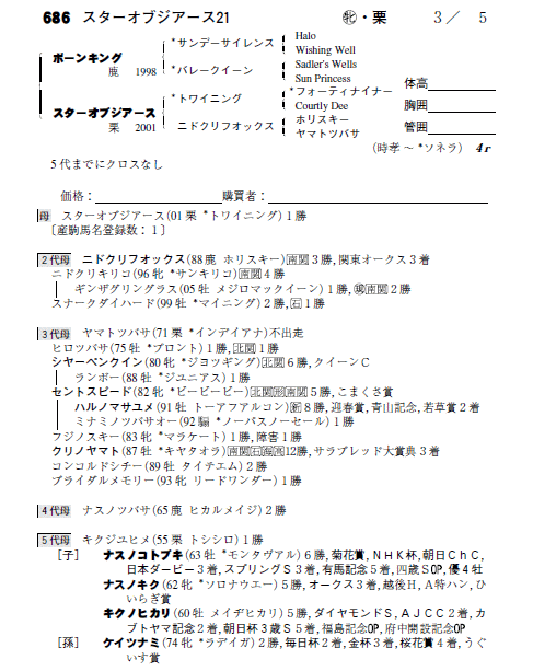 父ボーンキング 母スターオブジアース(母父トワイニング)
