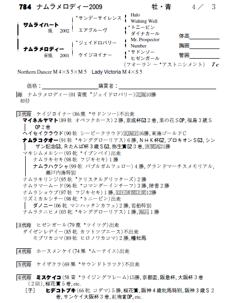 父サムライハート 母ナムラメロディー(母父ジェイドロバリー)