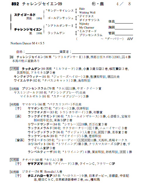 父ステイゴールド 母チャレンジセイエン(母父シアトルダンサー2)