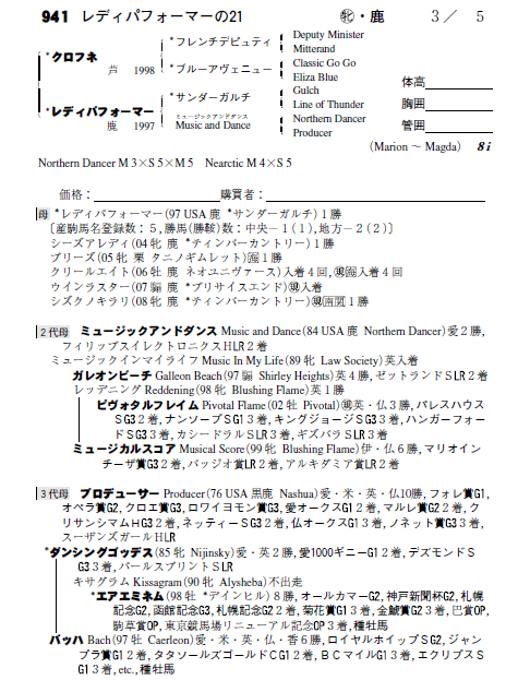 父クロフネ 母レディパフォーマー(母父サンダーガルチ)