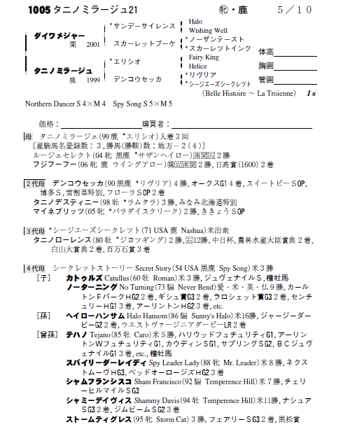 父ダイワメジャー 母タニノミラージュ(母父エリシオ)