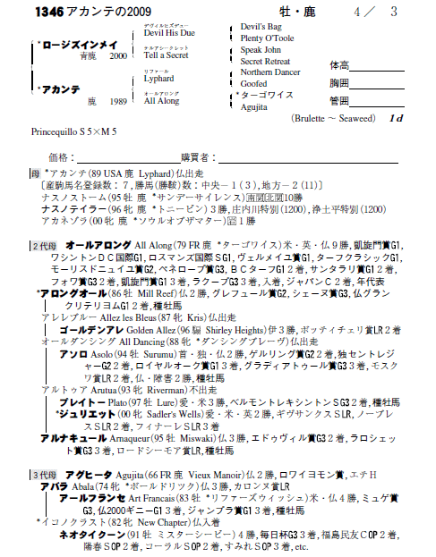アカンテの2009 牡 鹿 2009/4/3生 |