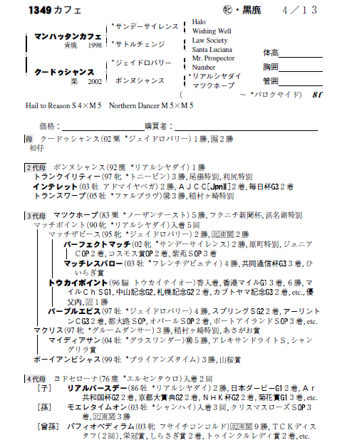 | 父マンハッタンカフェ 母クードゥシャンス(母父ジェイドロバリー) |