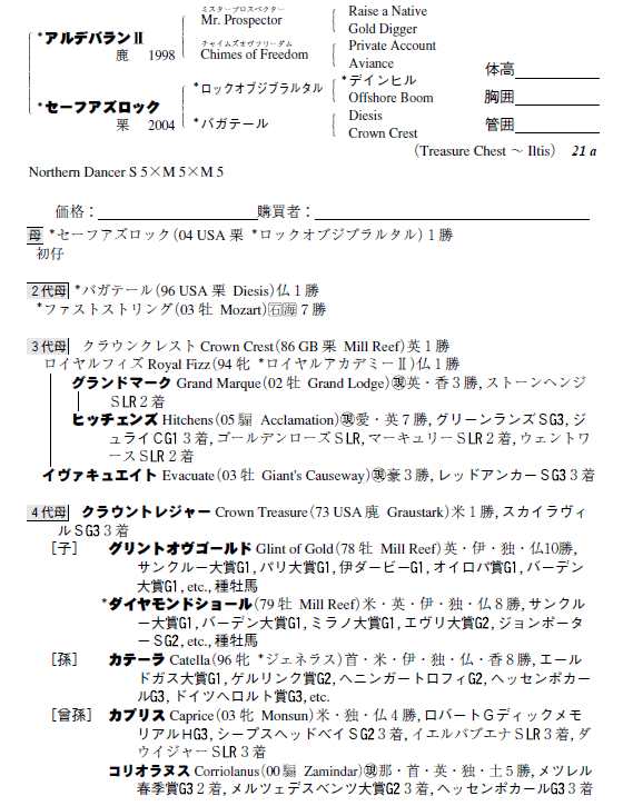父:アルデバランU 母:セーフアズロック(母父:ロックオブジブラルタル)