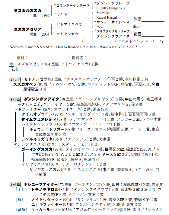 父:ラスカルスズカ 母:スズカアゼリア(母父:アドマイヤベガ)