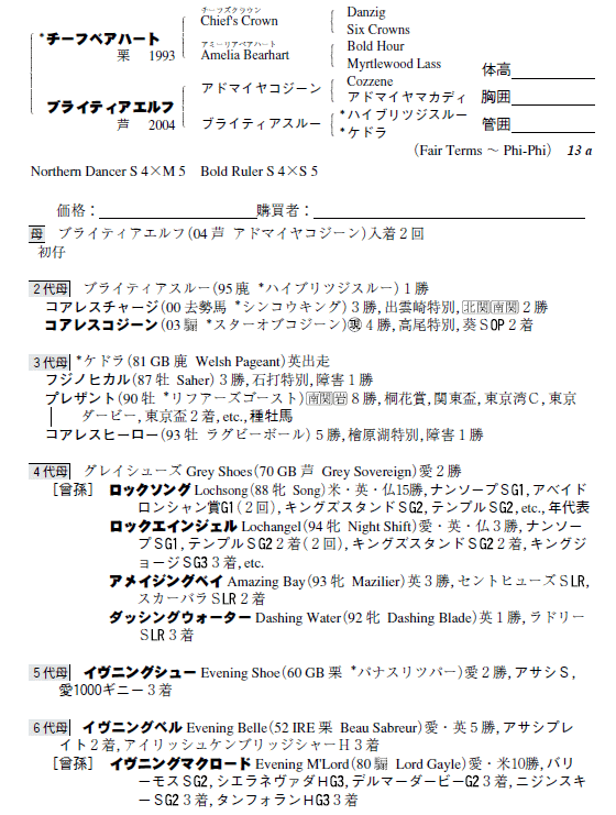 父:チーフベアハート 母:ブライティアエルフ(母父:アドマイヤコジーン)