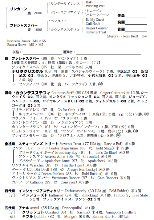 父:リンカーン 母:プレシャスラバー(母父:ペンタイア)