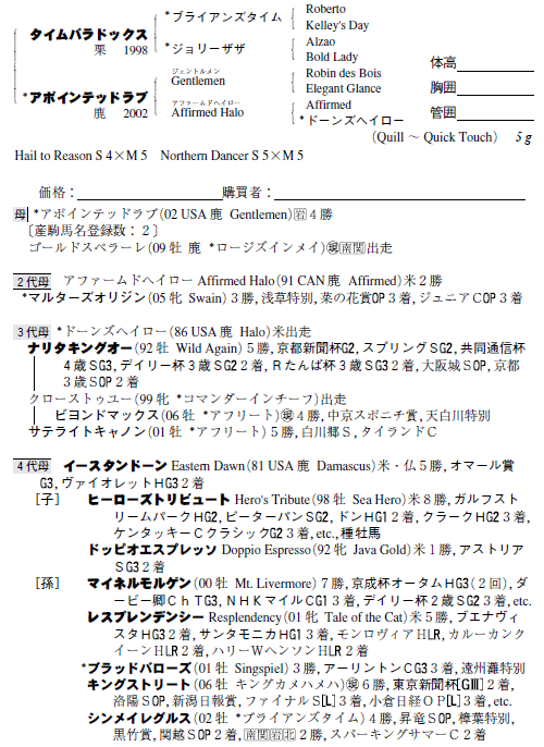 父:タイムパラドックス 母:アポインテッドラブ(母父:Gentlemen)