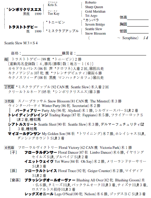 父:シンボリクリスエス 母:トラストトゲピー(母父:トニービン)