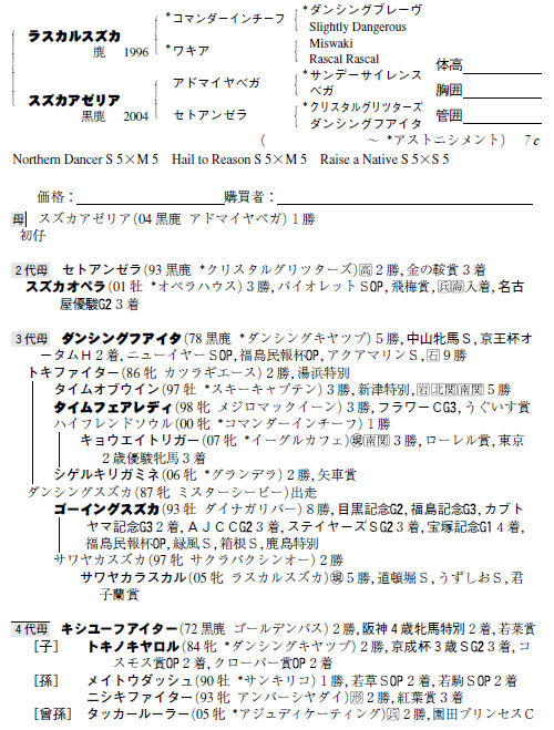父:ラスカルスズカ 母:スズカアゼリア(母父:アドマイヤベガ)