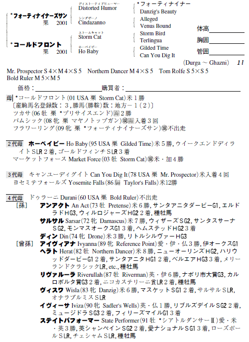 父:フォーティナイナーズサン 母:コールドフロント(母父:Storm Cat)