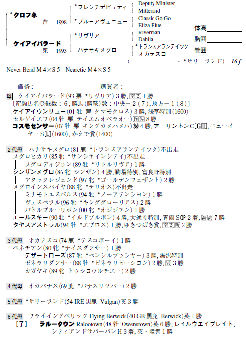 父:クロフネ 母:ケイアイバラード(母父:リヴリア)