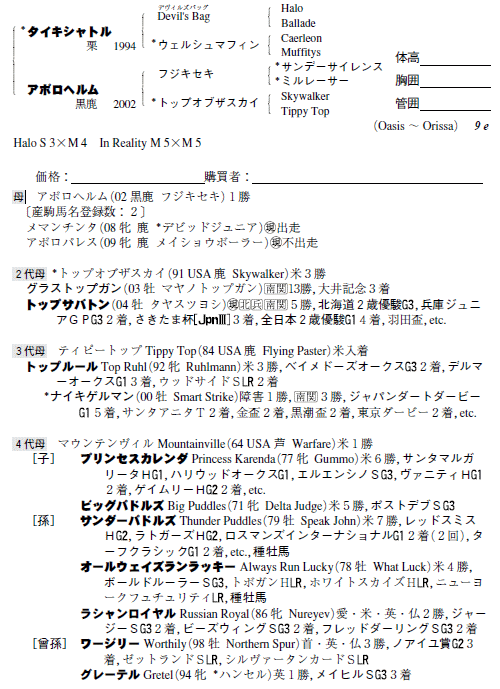 父:タイキシャトル 母:アポロヘルム(母父:フジキセキ)