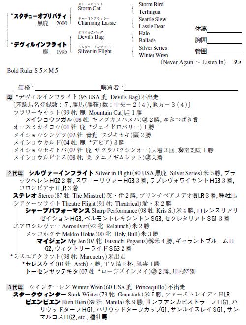 サマーセール2011(一歳、9月8日開催)上場馬