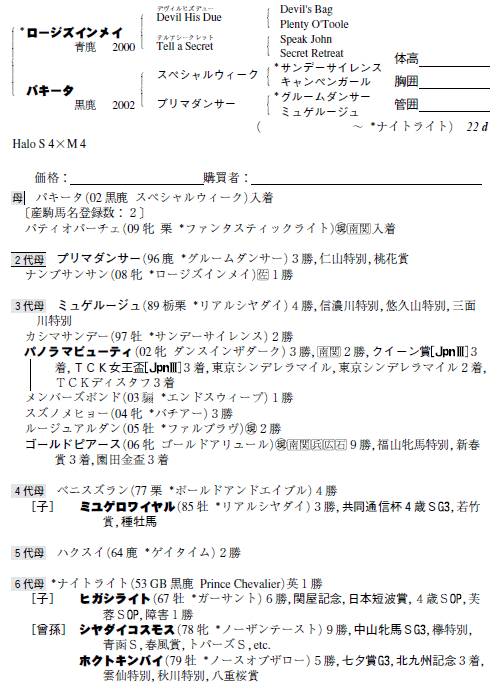 父:ロージズインメイ 母:パキータ(母父:スペシャルウィーク)