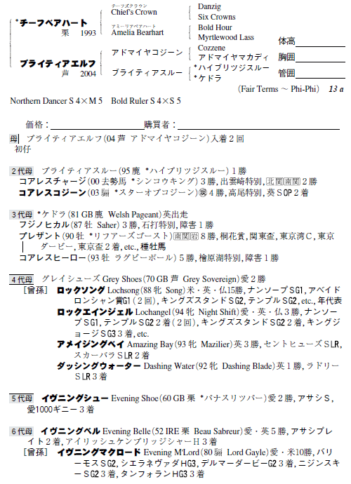 父:チーフベアハート 母:ブライティアエルフ(母父:アドマイヤコジーン)
