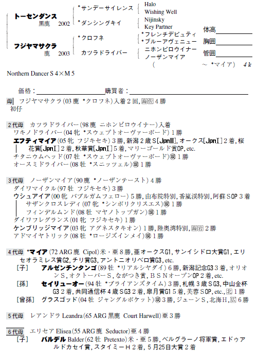 父:トーセンダンス 母:フジヤマサクラ(母父:クロフネ)