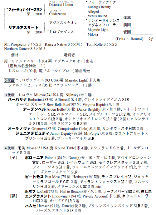 父:フォーティナイナーズサン 母:リアルアスリート(母父:アグネスタキオン)