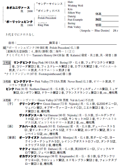 父:ネオユニヴァース 母:ポーリッシュピンク(母父:Polish Precedent)
