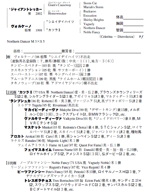 父:ジャイアントレッカー 母:ヴォルケーノ(母父:シエイデイハイツ)