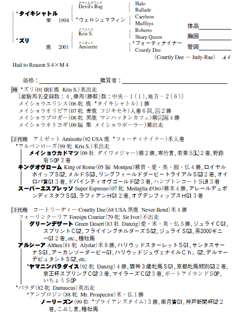 父:タイキシャトル 母:ズリ(母父:Kris S.)