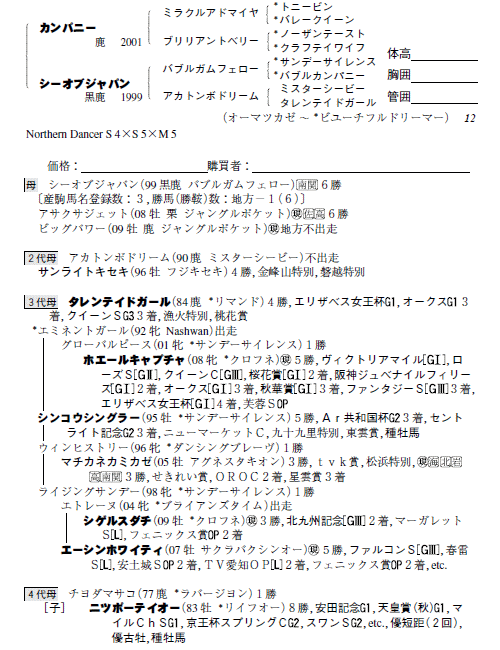 父:カンパニー 母:シーオブジャパン(母父:バブルガムフェロー)