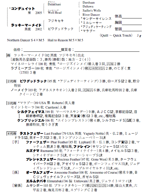 父:コンデュイット 母:ラッキーマーメイド(母父:フジキセキ)
