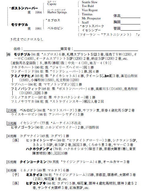 父:ボストンハーバー 母:モリチヅル(母父:エブロス)