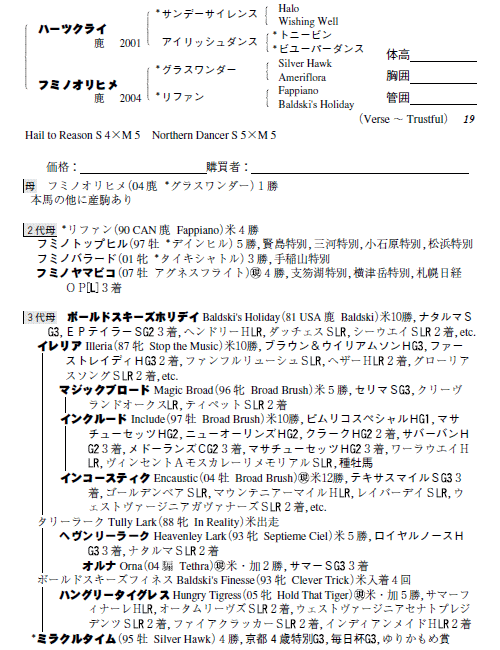 父:ハーツクライ 母:フミノオリヒメ(母父:グラスワンダー)