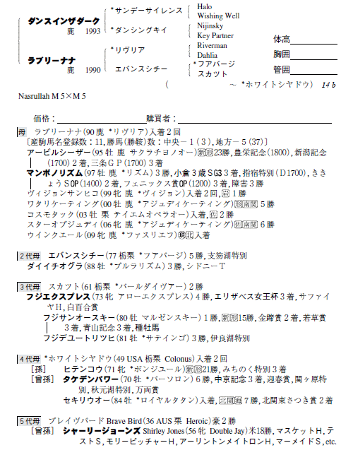父:ダンスインザダーク 母:ラブリーナナ(母父:リヴリア)