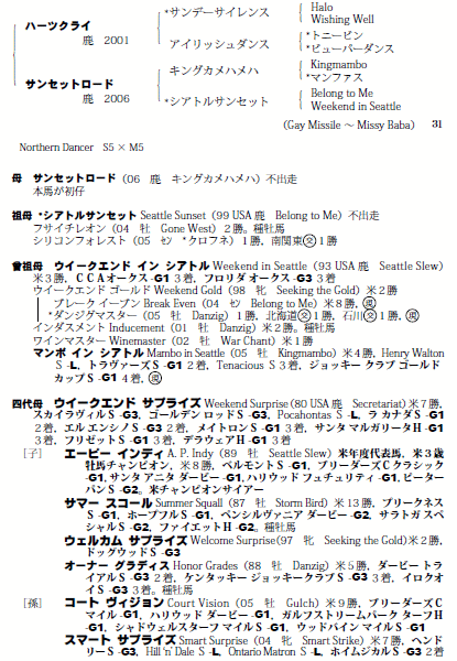 父:ハーツクライ 母:サンセットロード(母父:キングカメハメハ)